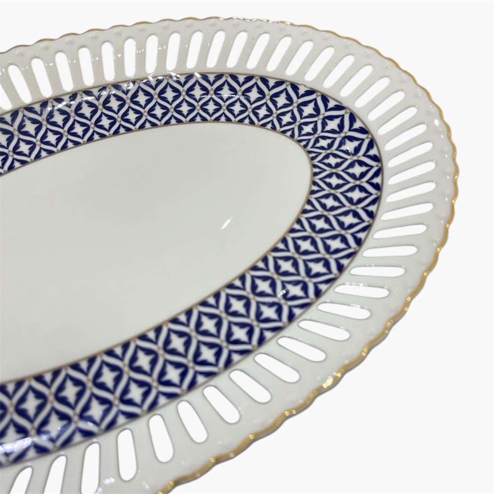 اجعل ضيافتك أكثر تميزًا مع هذا الصحن البيضاوي المصنوع من البورسلان عالي الجودة، بتصميم أنيق يحمل نقشًا مغربيًا فاخرًا يضفي لمسة من الجمال والتراث على سفرتك. عملي ومتين، يمكنك استخدامه لتقديم مختلف الأطباق، من الحلا والمكسرات إلى المقبلات والفاكهة، بكل أناقة.